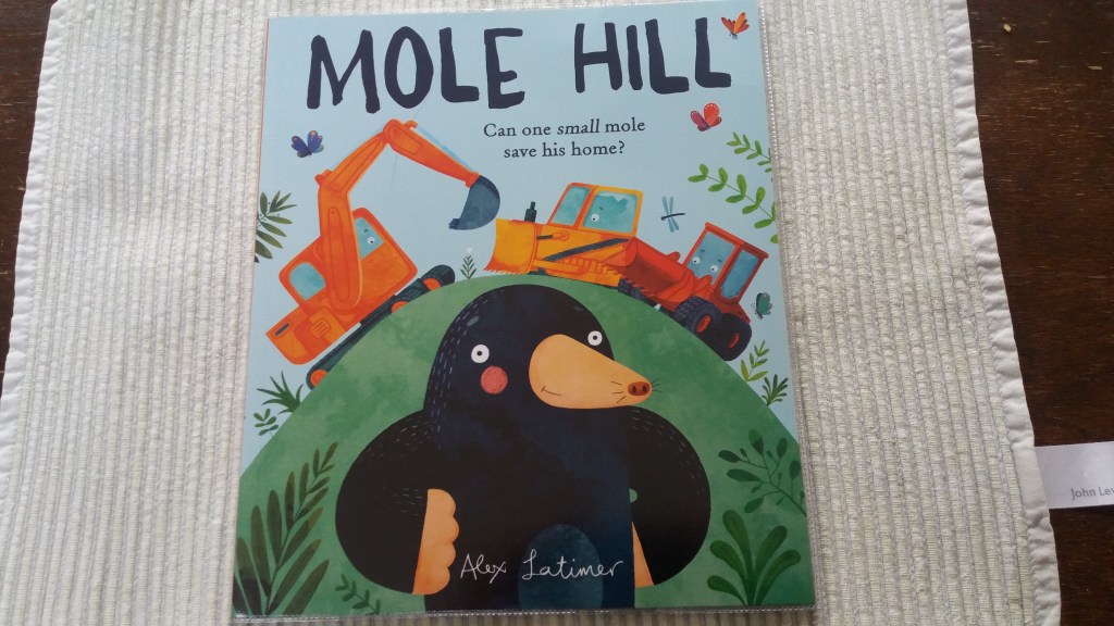 A truly delightful picture book which deploys the classic formula of a smart animal outwitting the greedy folks who want to take his home away from him. In this case the smart animal is a mole (a Daddy mole, as it happens) whose home is threatened by the building of a new shopping mall. He uses his superior knowledge of paleontology to trick the mechanical monsters and order is happily restored in time for bed. This would be a great sharing text for siblings with a bit of an age gap, as 2 – 3 year olds will just enjoy the story at face value, while older ones will enjoy getting ahead of the story and maybe identifying which dinosaurs have been discovered. The illustrations are very clever (a cutaway view of Mole’s home; dotted lines to show where the mall would go) and the rhymes satisfyingly accurate. You can see the book and hear the author reading it here.